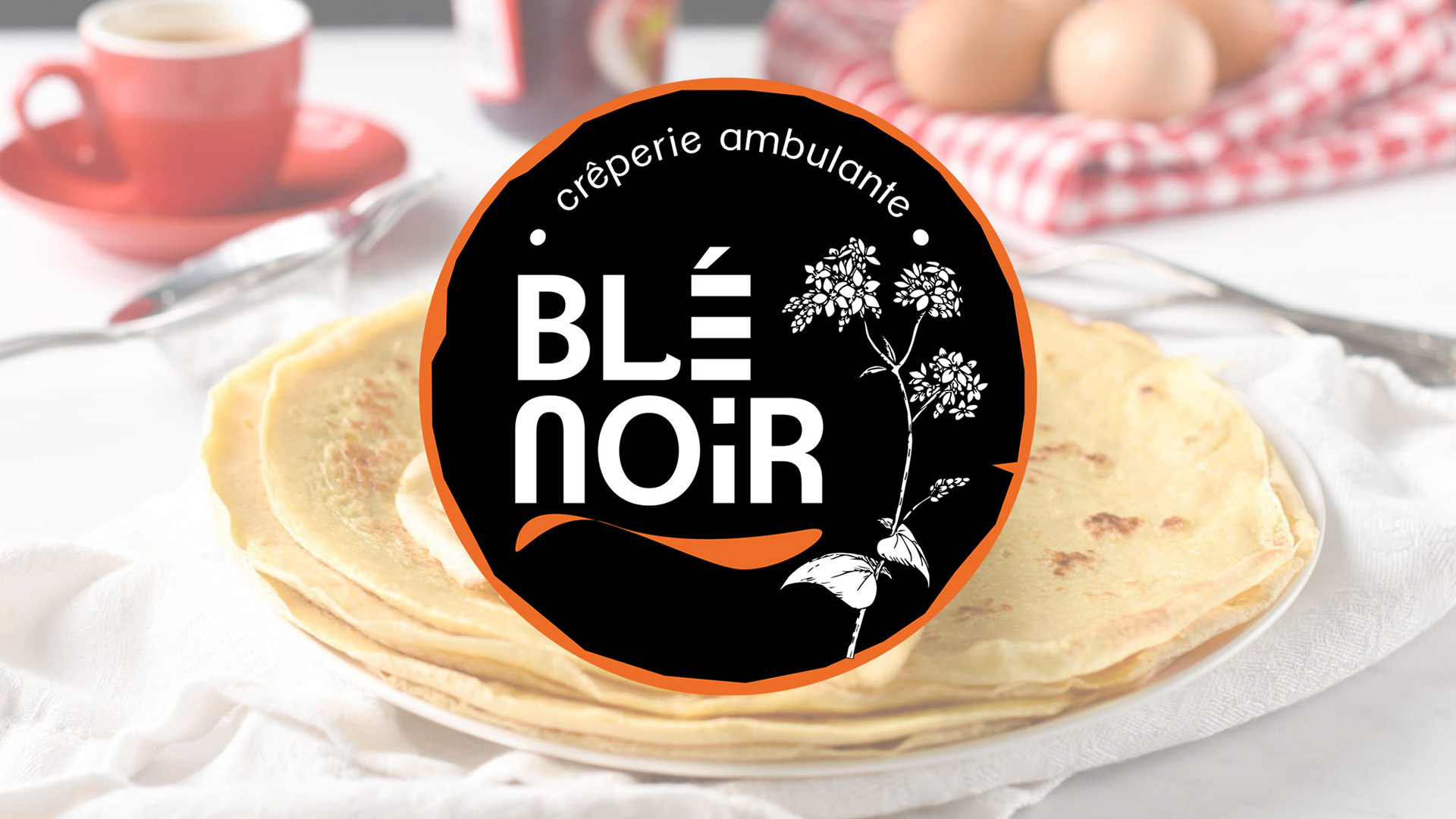Logo pour la crêperie ambulante Blé Noir, avec sa fleur de sarrasin et son esprit breton! Kenavo!